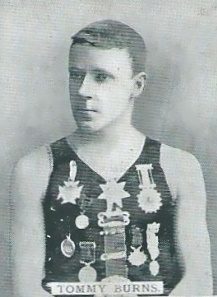 В 1890 году Бернс участвовал в соревнованиях против американского спортсмена Карлайла Д. Грэма. Они должны были нырнуть с Ранкорнского моста и проплывать 270 метров, а затем пробежать 16 километров. Чтобы их не поймала полиция, спортсмены переоделись: наш земляк в старую бабушку, а американец в рабочего. В результате Бернс одержал победу.